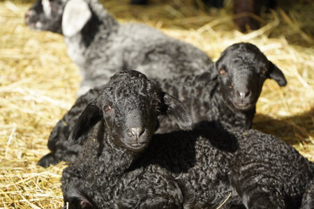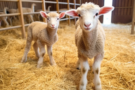Charming and Adorable Lambs Engaging in Play and Resting Comfortably in a Cozy Barn