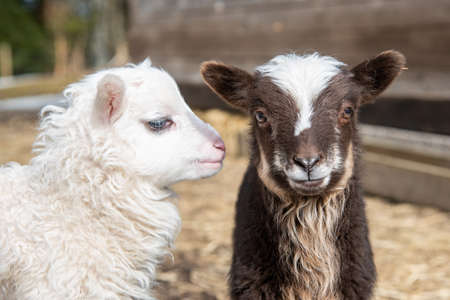 two young and cute little lambs standing together