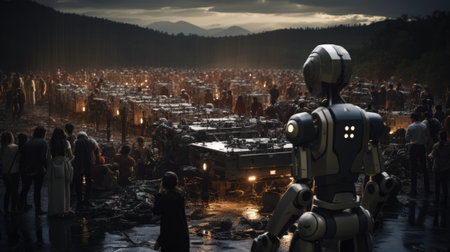 invasion of military robots. Dramatic apocalypse super realistic concept. Future. 3d rendering.