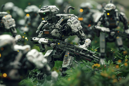 Humans with robots in military gear, artificial intelligence for warfare, or a dystopian future