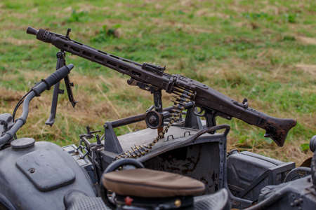 Machine gun of the German Army Wehrmacht MG-42 mounted on a motorcycle cradle,German machine gun of the times of World War II