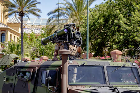 Seville, Spain - June 01, 2019: Campaign Artillery Group. Land army during display of Spanish Armed Forces Day in Seville, Spain