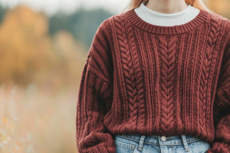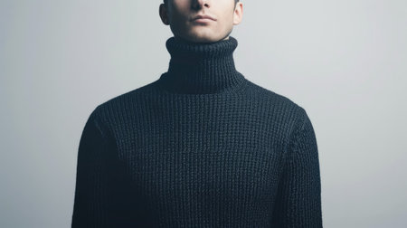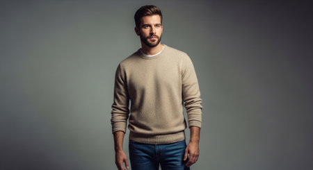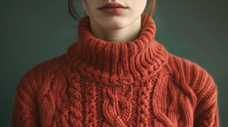 Cozy warm sweater worn by a model in a modern indoor setting, emphasizing comfort and style with muted tones Perfect for seasonal fashion themes