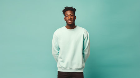 Trendy young African man in casual wear smiling and looking at camera while sitting against blue background : Generative AI