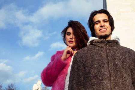 cheerful happy and beautiful caucasian couple having date together outdoors