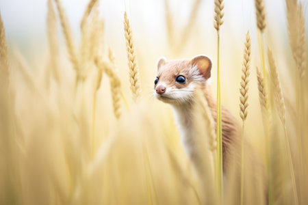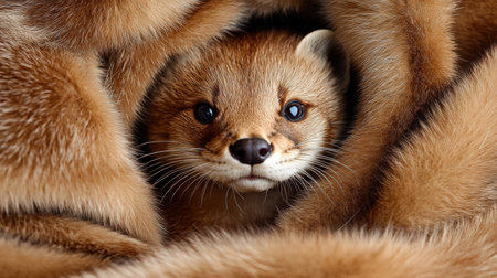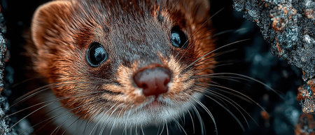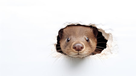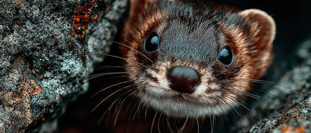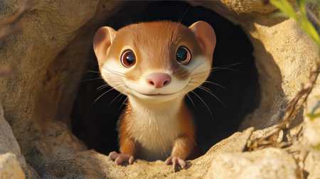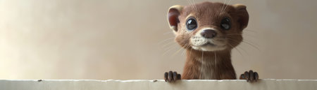 Capture the heartwarming curiosity of a baby weasel peeking over the edge with its innocent, wide-eyed gaze Witness the charm of wildlife in their natural habitat as the weasel's soft fur and playful demeanor evoke a sense of joy and wonder, creating an irresistible image for nature enthusiasts AI Generative