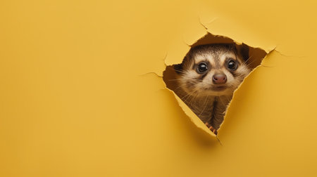 A small, curious animal emerges from its burrow, showcasing its natural habitat. The creature, exhibiting alertness, peeks from the earthy opening in search of food or safety.