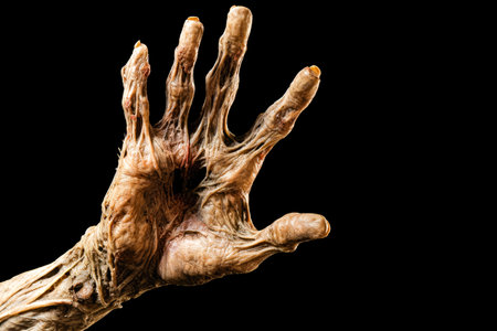 Zombie hands isolated on black background. Halloween concept. close up