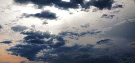 Dark stormy sky background with many colors. Natural dark clouds background.