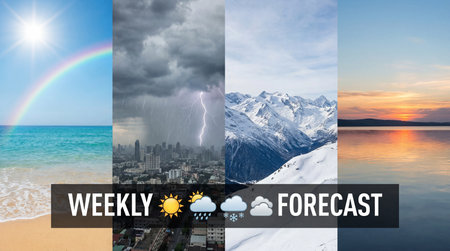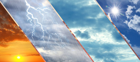Forecast concept. Collage of photos with different weather conditions, banner design