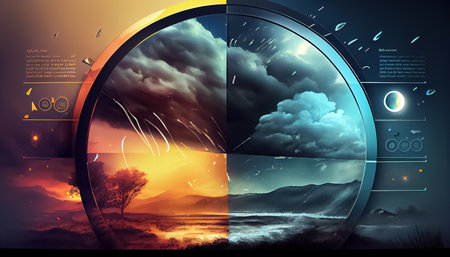 Collage showcases breathtaking skies amid diverse weather patterns, revealing the beauty and complexity of nature's mood while highlighting climate shifts and meteorological phenomena.