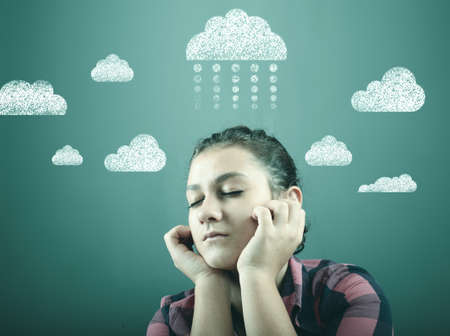 Creative weather forecast. Sunny day and rain on contrast together, human emotions, panorama, copy space