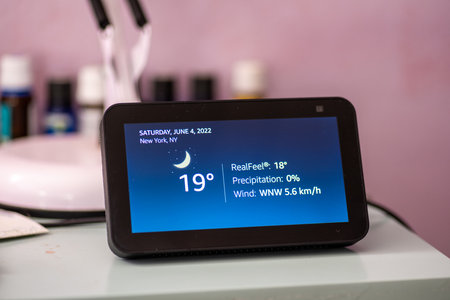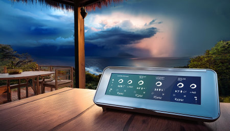 Colorful weather forecast display features icons indicating temperature and weather conditions for different days of the week, showing a modern design.