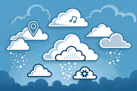 Cloud computing concept, paper clouds with micro SD cards as raindrops