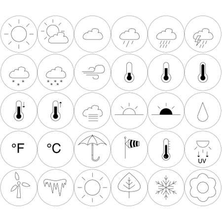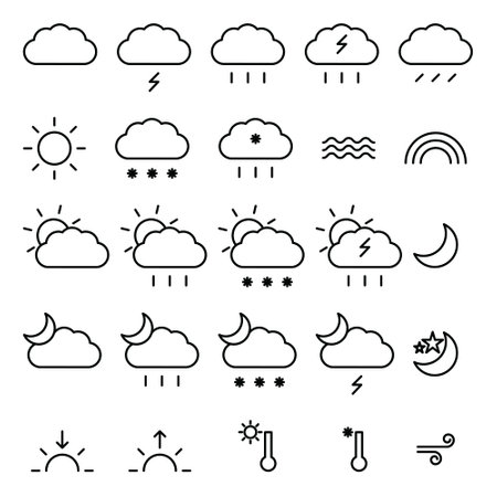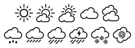 Weather forecast. Outline isolated web icons set.