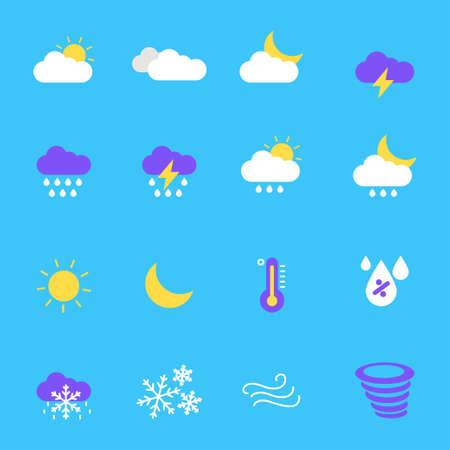 Weather icon set. Meteorology symbol weather forecast. Isolated icons prognosis weather. Design element. Colorful symbol of sky. Template for weather forecast. Flat vector image. Vector illustration