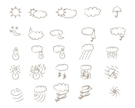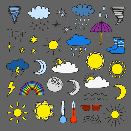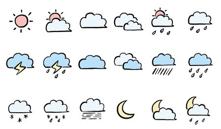 Set of doodle weather icons.