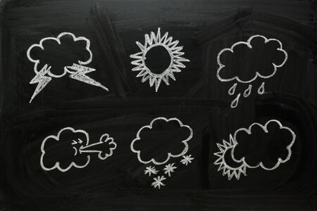 Weather symbols drawn in chalk on a blackboard