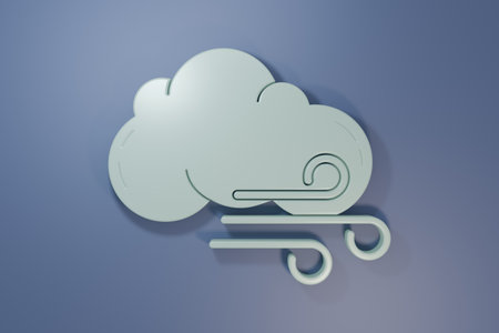 Gray Windy weather icon isolated on purple-blue background. Cloud and wind. Minimalism concept. 3D render illustration.