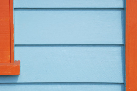 Wooden wall with window frames, blue and orange