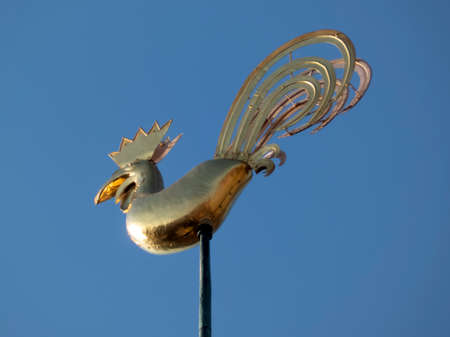 Weather vane - cockerel which reflected sun against bright-dark blue sky