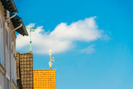 Artistic abstract picture of a small cloud in the blue sky above the roofs of medieval houses in a small town, Gifhorn, Germany
