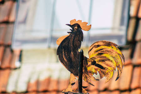 Weather vane in the form of a cock on the house in Garmisch-Partenkirchen