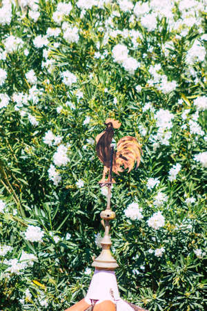 Russia, Kazan June 2019. Weather vane on the building of the hotel for pilgrims in the Raif monastery. Christian culture, tourism and pilgrimage.