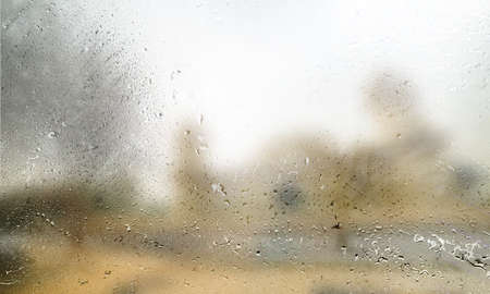 Rain drops on window glass with blurred background. Condensation on the glass.