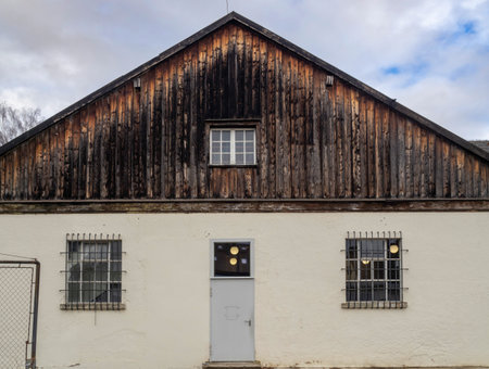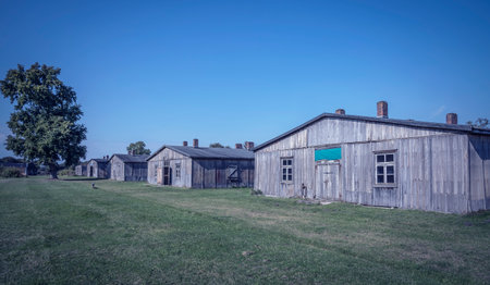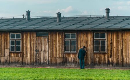 Oswiencim, Poland - September 21, 2019: Birkenau concentration camp. Death barracks. Jewish extermination camp history.