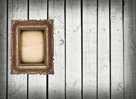 Gold frame on a old wooden wall background.