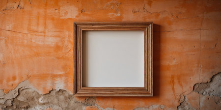 AI Generated. Square wooden decorative frame on an orange textured wall