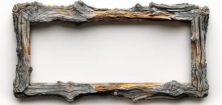 Rustic wooden frame features beautiful carvings and a weathered finish designed to hold art photographs set against clean white backdrop. A frame with intricate details against a white background. AI