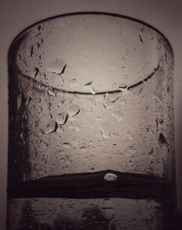 still clear water in a crystal glass. shadows and reflects. copy space. fresh water concept.