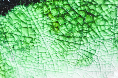 Detailed texture of shattered tempered glass showcasing intricate cracks and orange patterns