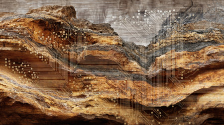 Detailed cross-section presents different layers of the Earths crust with vibrant mineral deposits, illustrating geological diversity and structure with impressive clarity in high resolution.