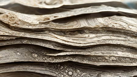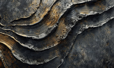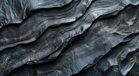 AI Generated. Abstract close up of layered black and gray rock formations