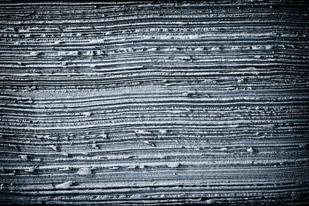 Strata showing close-up macro view of layered blue and grey sedimentary rock strata with fine texture and cracks. resolution use.