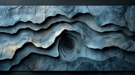 Abstract showcasing a detailed dark gray leather texture with layered wave patterns and rough edges, providing a striking, dimensional material surface.
