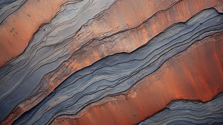 A close-up view of layered earth materials in a palette of oranges, grays, and blues, invoking a sense of natural geology. Created with Generative AI