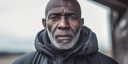 The image is a portrait of an elderly black bald man outdoors. It captures his experienced and wise demeanor, reflecting a lifetime of stories and knowledge. The outdoor setting adds a natural and peaceful backdrop, highlighting his dignified and composed presence.