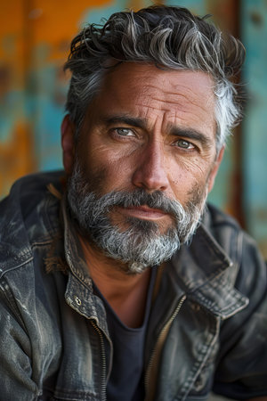 Portrait of a handsome mature man with gray beard and mustache.