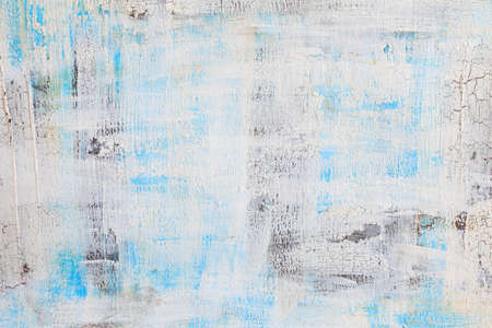 Background texture. Surface with blue and white old cracked paint. Top view. Copy space
