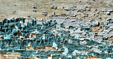 Cracked and peeling paint on old wooden surface macro