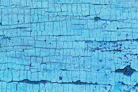 Old painted blue boards for use as a background. Colored wooden background with cracked paint. Peeling paint on wall seamless texture. Pattern of rustic blue grunge material.