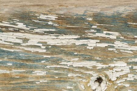 Close up of weathered wooden surface with peeling paint