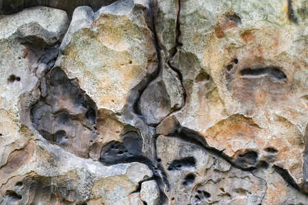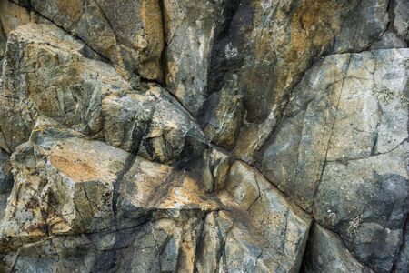 Sea cracked granite textured rock concept photo. Mountain rough surface. Close up stone background for design. Texture in nature for wallpaper. High quality picture for wallpaper