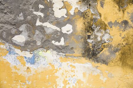 Old weathered painted yellow color peeling wall