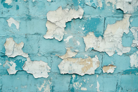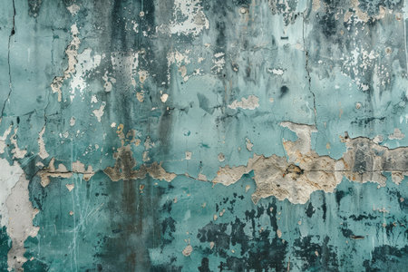 A grunge wall texture in faded teal, with a mix of chipped paint, water stains, and rough patches.