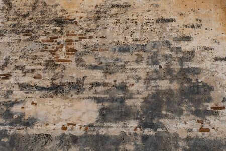 Mold stains on a surface of weather-beaten humid plaster